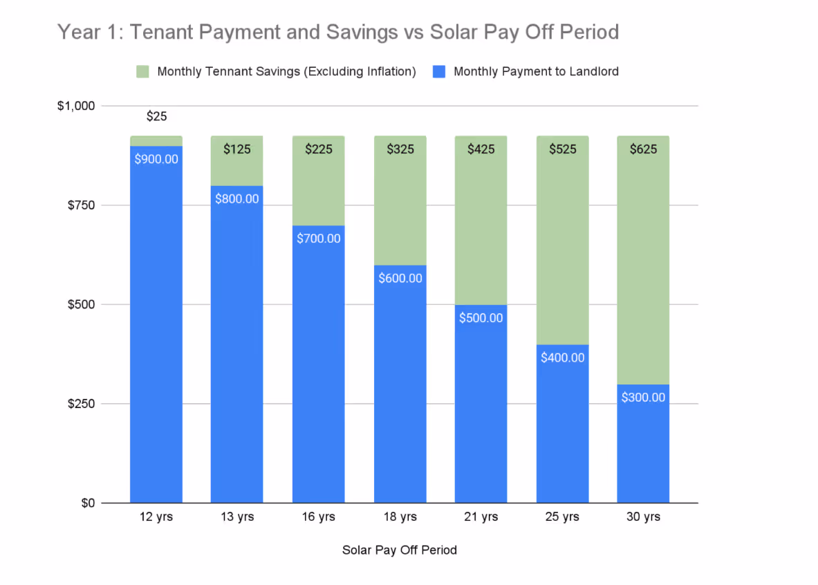 - The landlord has high confidence in the payback period of the solar investment due to the fixed monthly payments.